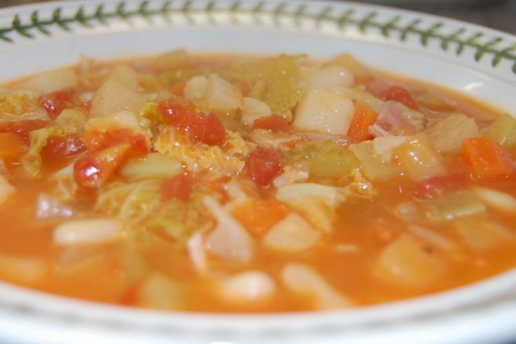 Soup is a really good one for batch cooking, the quantities above will happily serve 8 - 10 people depending on their appetites. Once its cooked I batch it up into 2 portion servings, cool it and then freeze. Perfect for lunches with some home made bread, I favour sunflower seed wholemeal rolls with this, and maybe a grating of Parmesan Cheese too. Another ingredient I add occasionally when warming it back up is finely shredded Savoy cabbage, it looks really pretty, adds a sweetness and crunch, and well, I am a big cabbage fan anyway! By the time the soup is thoroughly heated through, the cabbage is as cooked as I like it. I have put the ingredients and method below, but you dont have to stick to this list, add peas or sliced beans, or any of the other root veggies that take your fancy; Celeriac, Parsnips, Swede all work too, and I suspect squash and sweet potatoes would too, although they would sweeten the soup considerably.