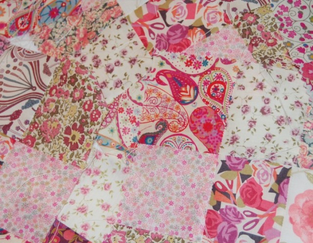 I have a lot of swatches taken from various manufacturer's samples books, my favourites being Liberty Fabrics as shown above. They are only small scraps measuring 14 x 20 cms each, but cut into 6 equal sized pieces, they are perfect for patchwork.