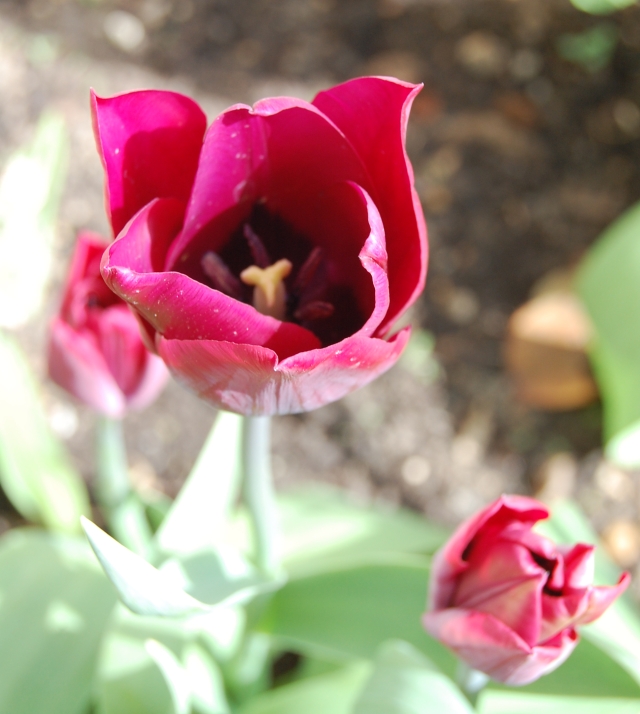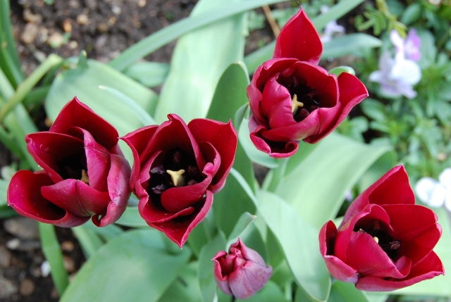 How can it be snowing when the Tulips are out, the Roses are forming nice fat buds, and the Delphiniums have nascent flower spike forming, enough colour showing to know whether the plant will be pale or dark blue.